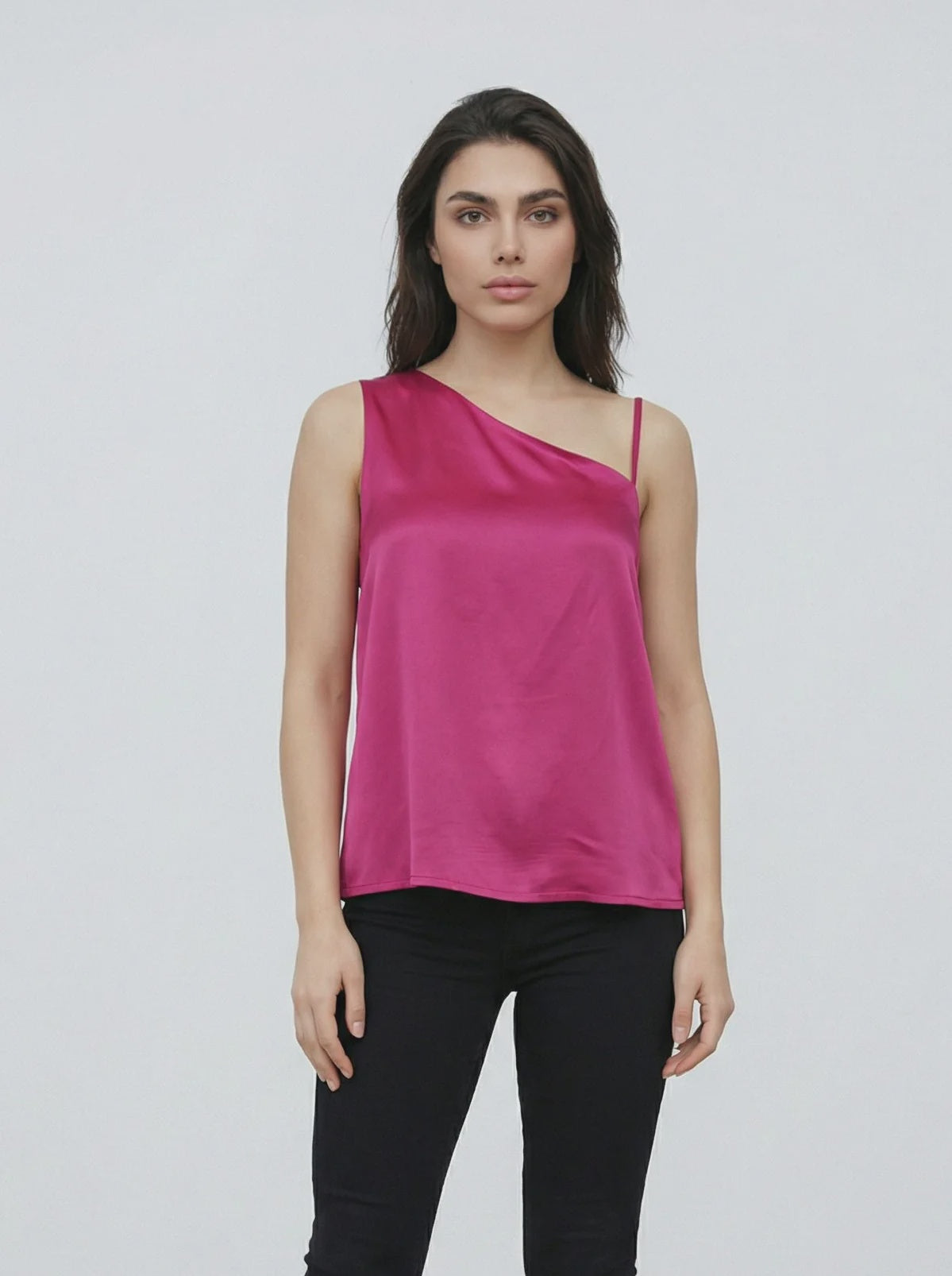 Add a touch of sophistication to your outfit with this asymmetrical satin top. One wide strap and one thin strap create a chic effect, perfect for elegant evenings.