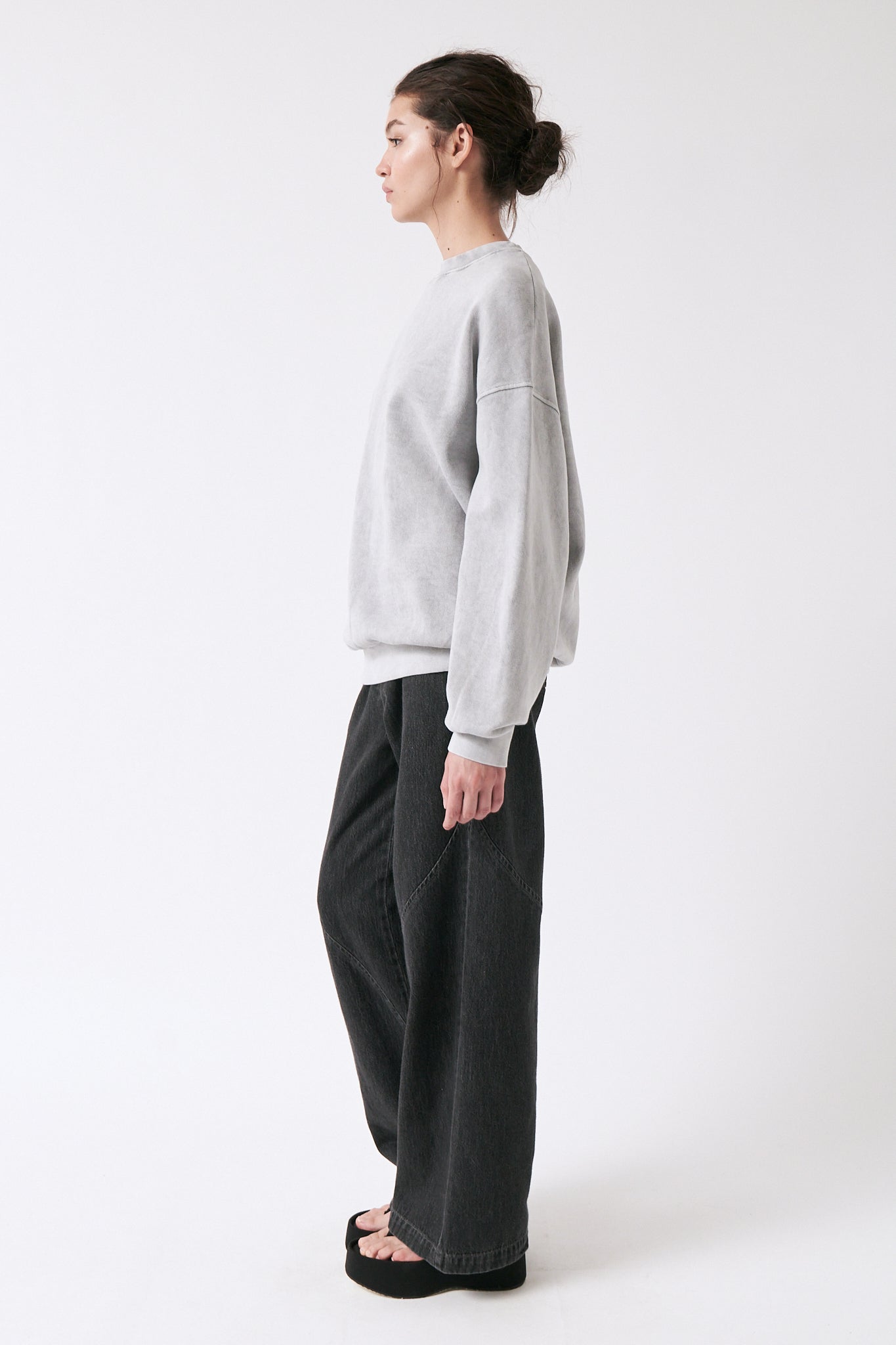 - A relaxed, unisex sweatshirt with a classic crew neck. Soft and cozy, it’s designed for comfort and everyday wear. The acid-washed grey gives it a subtle vintage-inspired character.