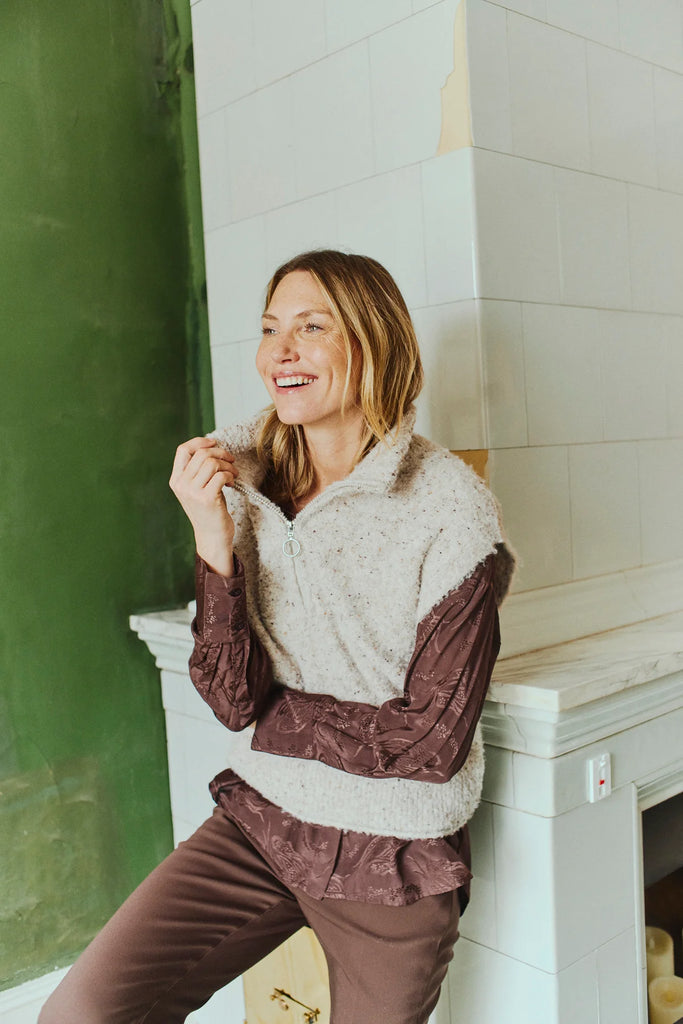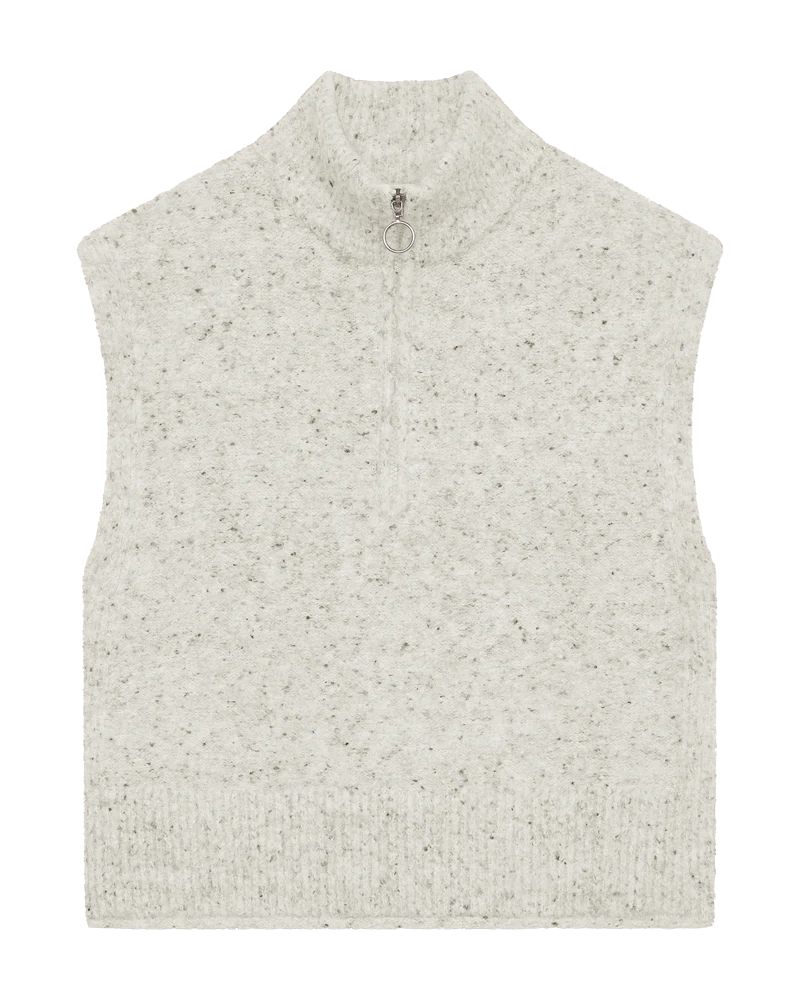 - The waistcoat has a simple silhouette with a regular fit, a high collar, zip fastening, a loose fit and wide ribbing.